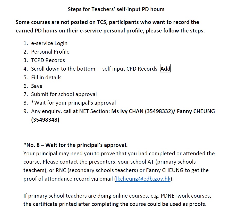 Steps for Teacher's Self-input PD Hours 'Claiming PD Hours (for Participants)'
